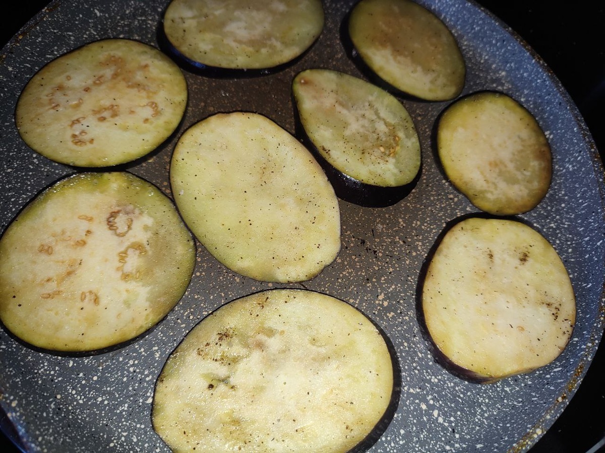 Первый делом начала припекать баклажаны - их было много, поэтому с них и начала.