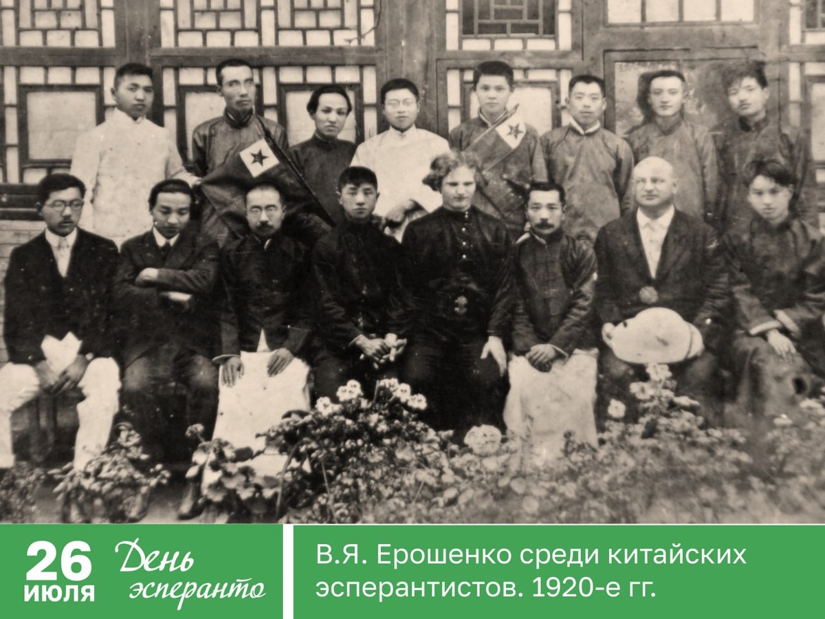 #ДеньЭсперанто Ежегодно 26 июля отмечают День эсперанто. Этот необычный праздник посвящен искусственно созданному языку, призванному объединить всех людей мира. Именно в этот день в 1887 г. вышла в свет книга «Международный язык», автором которой стал польский врач офтальмолог и лингвист Л.М. Заменгоф, взявший псевдоним Эсперанто, что в переводе означает «надеющийся». Наш земляк В.Я. Ерошенко, человек сложной судьбы, слепой писатель и музыкант, прекрасно владел эсперанто, ставшим для него путеводной звездой. Благодаря знанию этого языка В.Я. Ерошенко получил образование в музыкальной академии для незрячих при Королевском институте слепых в Англии. В Китае, где В.Я. Ерошенко проживал продолжительное время, он преподавал язык эсперанто в Институте языков мира при Шанхайской эсперанто-лиге и в Пекинском университете.