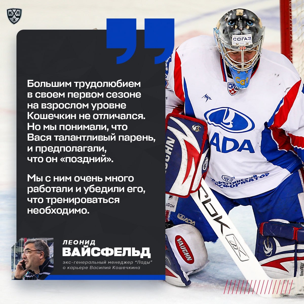 Дебют Василия Кошечкина во взрослом хоккее состоялся 15 сентября 2003 года и получился серьезным: сразу против действующего чемпиона — «Локомотива», а первый гол 20-летнему Василию забил Иван Ткаченко («Лада» проиграла 1:2). Так начался путь одного из лучших вратарей в истории КХЛ и отечественного хоккея.