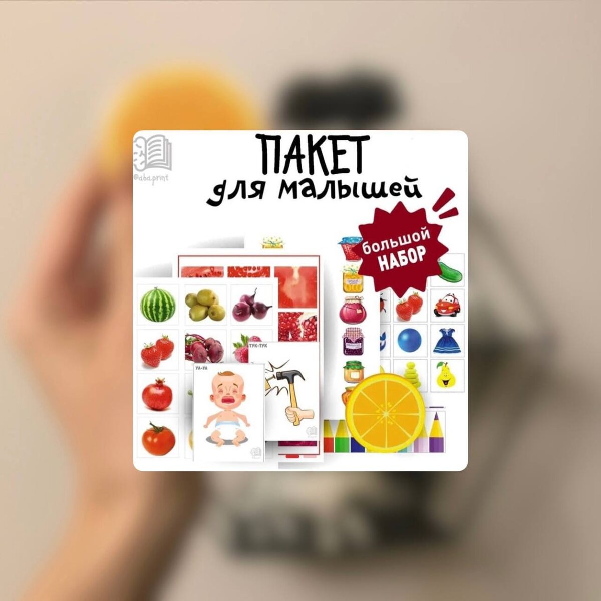 БОЛЬШОЙ ПАКЕТ пособий, отлично подойдёт для малышей (1-2 уровня по vb-mapp)🤗 ❗️Все пособия не анонсированы в abaprint и включены только в данный набор В КОМПЛЕКТ ВХОДИТ: ✔️ Ассоциации (18 карточек) ✔️ Различные игры на визуальные сопоставление (5 игр) ✔️ Пособие сопоставление идентичных (16 карточек) ✔️ Большой – маленький (16 карточек) ✔️ Карточки звукоподражания (16 карточек) ✔️ Сортировка по цвету (поле с цветом для размещения карточек - 6 штук и 36 карточек с картинками разных цветов) ✔️Большой набор карточек - 52 стимула в двух видах (каждый стимул представлен в двух видах) - 52 карточки Распечатай и занимайся! Файл полностью готов к печати⬇️ https://abaprint.ru/o/4fdbd8/