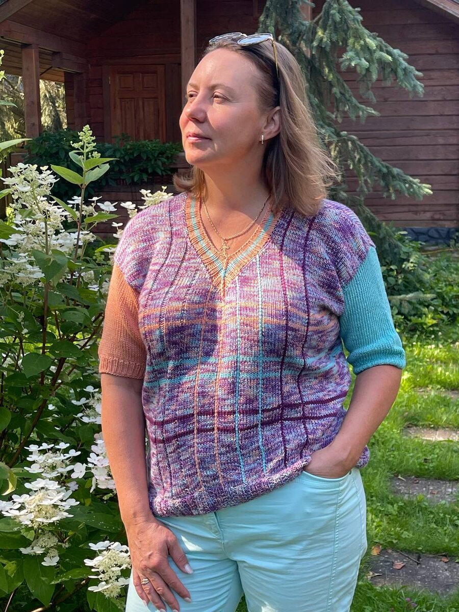 Довязала ! Провела ВТО . И готова вам показать свою новую футболку из двух ниток бамбука и хлопка . Когда начинала вязать 🧶 даже не думала , что рукава будут цветные , в цвет полосок. https://t.me/elenagalitsyna/4669 А на уровне резинки , даже не думала , что вообще будут полоски . Вертикальные и горизонтальные . Вертикальные полоски попробовала вязать первый раз . Вдохновилась картинками в интернете , которыми всегда делюсь с вами по понедельникам. https://t.me/elenagalitsyna/4701 Жду ваших реакций ! Лето радует нас солнышком и теплыми денечками 🌺🌺🌺