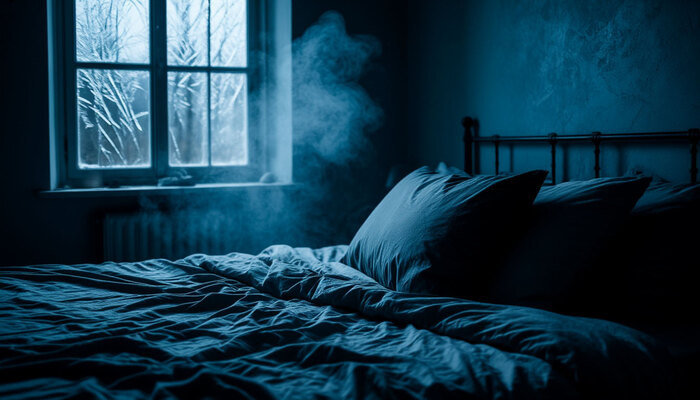 Силуэт сдвинулся с места. Не шагами. Он просто... плыл по полу, бесшумно, неотвратимо. Остановился у самого края кровати. Наклонился. И тогда я почувствовал его. Не воздух, нет. Ледяное излучение, исходящее от этой черноты. Мороз пробирал до костей, сковал легкие. Сердце колотилось, как бешеное, пытаясь вырваться из окаменевшей груди. Крик застрял где-то глубоко в горле комком.