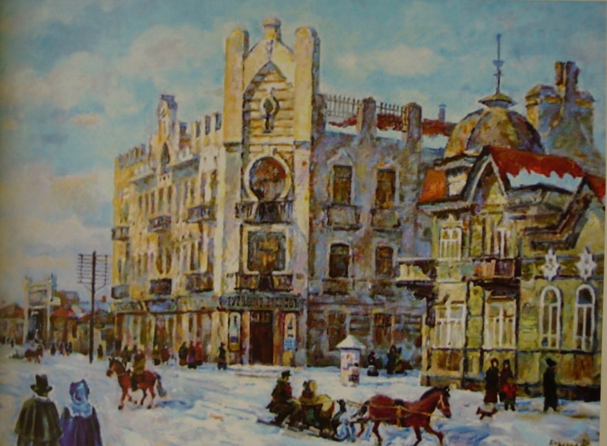 Сегодня познакомимся с некоторыми работами художника Рыжова Леонида Степановича. Пару скупых слов из биографии. Рыжов Леонид Степанович (1 апреля 1932 года - 13 июля 2011 года) родился в Чите-первой в семье железнодорожников. Одновременно со средней школой окончил городскую детскую художественную школу, занимаясь у К. В. Мильера. Затем была учеба в Ленинградском художественно-промышленном училище имени В. Мухиной. Сдав государственные экзамены, Леонид Степанович в составе реставрационной бригады работал в Ярославле и Переславле Залесском, Ростове и Ленинграде. И везде учился: мастерству реставратора, монументалиста и просто - художника. Но даже там, на берегах Невы, его тянул назад родной город. Поэтому постранствовав, Рыжов в 1962 году вернулся в Читу, стал членом Союза художников России и написал несколько сот живописных произведений. Перейдем к ряду работ художника. 1. Чита. Гостиница "Даурское подворье", 2005 год. 2. Модель дацана в Чите, 1991 год. 3. Дом архитектора Г.В. Никитин