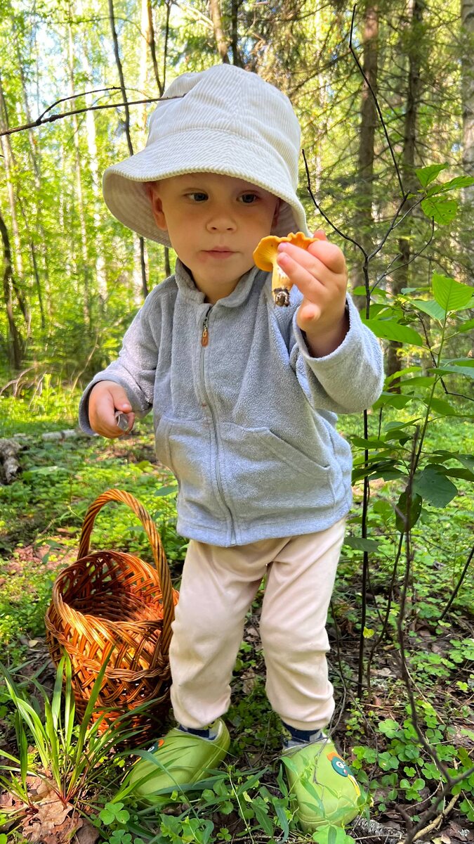Как хорошо в лесу прогулялись ❤️ И продуктивно 🍄🟫 честно говоря, не помню, чтоб так много лисичек было. Даже Ваня парочку нашел! А Тасёна прекрасно в хопе продрыхла целый час 💔