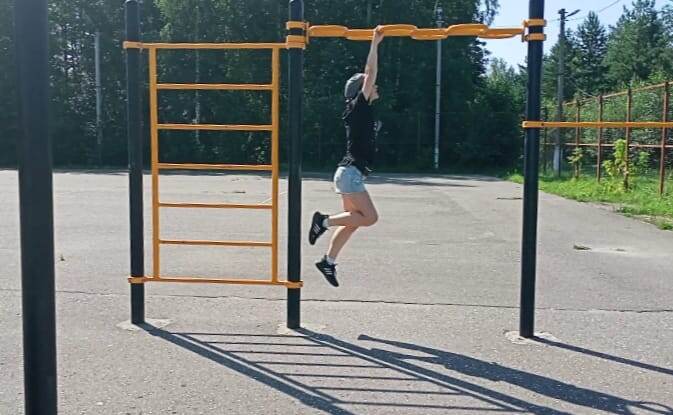 Миг (709). Сегодня день побед подтягиваний. Хвастаться нечем, поэтому смотрите, какие у нас отличные площадки в городе. Точнее, одна. Все остальные почему-то с очень толстыми перекладинами, не для моих рук. И мой "уголок". Почти 90 градусов. В начале лета он был больше. То есть мои попытки запихивать ноги в резинку, чтобы подтянуться, дали свои плоды, ноги растянулись. Интересно. А это юмористическая часть моей спортивной жизни. Фото доказывает, что человек произошёл от обезьяны и ноги когда-то были руками))) Ибо просто так повиснуть на одной руке я не могу, а вот если ухватиться ногами, тогда дааааааааааа. На доли секунд могу перехватить руками перекладины. Конец. МИГ. Что это? Это статья, под которой можно по желанию опубликовать фото сегодняшнего дня. Любое. Портрет, пейзаж, натюрморт, не важно. Цель? Остановиться и увидеть жизнь вокруг. Правила: Будьте людьми. Первая статья на тему вот. Подборка на тему МИГ вот. В этот день: 27.07.23 - Как мы дружим против собаки. (Тык.) 27.07.