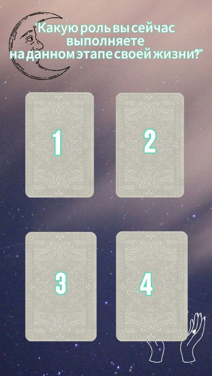 Выберите одну из четырёх карт, и узнайте, какие удивительные возможности скрыты в вашем внутреннем мире. Не спешите, прислушайтесь к своей интуиции!
