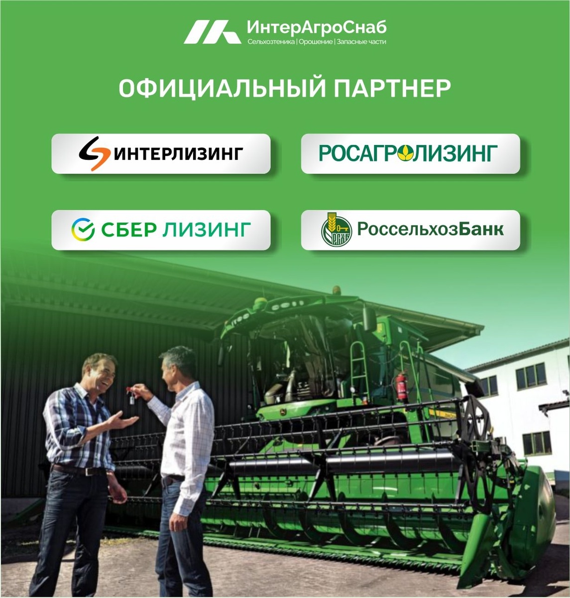 Компания ИнтерАгроСнаб предлагает выгодные условия приобретения сельскохозяйственной техники и оборудования через лизинговые программы. Мы сотрудничаем с ведущими лизинговыми компаниями и банками, чтобы вы могли обновить парк техники с минимальными затратами.