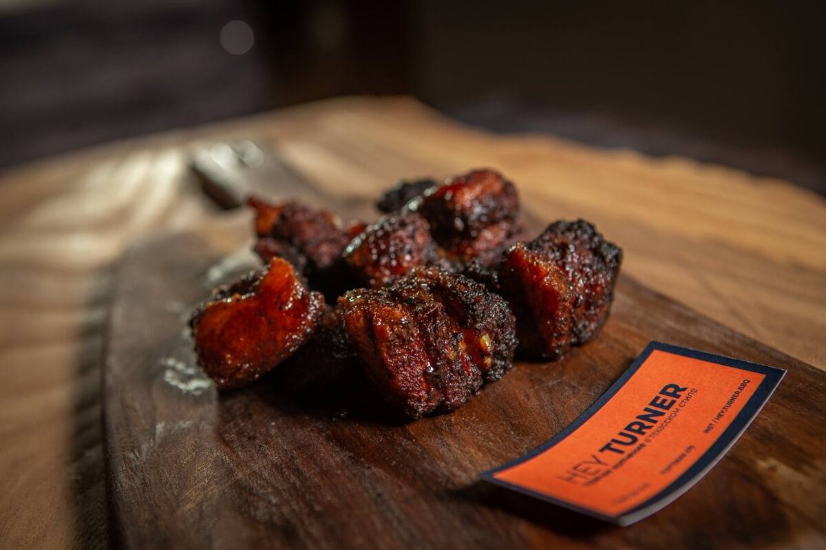 Свиная грудинка, нарезанная кубиками, копченая, томленная и доведенная до совершенства в нашем фирменном соусе барбекю. Соус готовим самостоятельно на основе томатной базы, балансируя соками от отрубов и уникальным набором специй из Вьетнама.