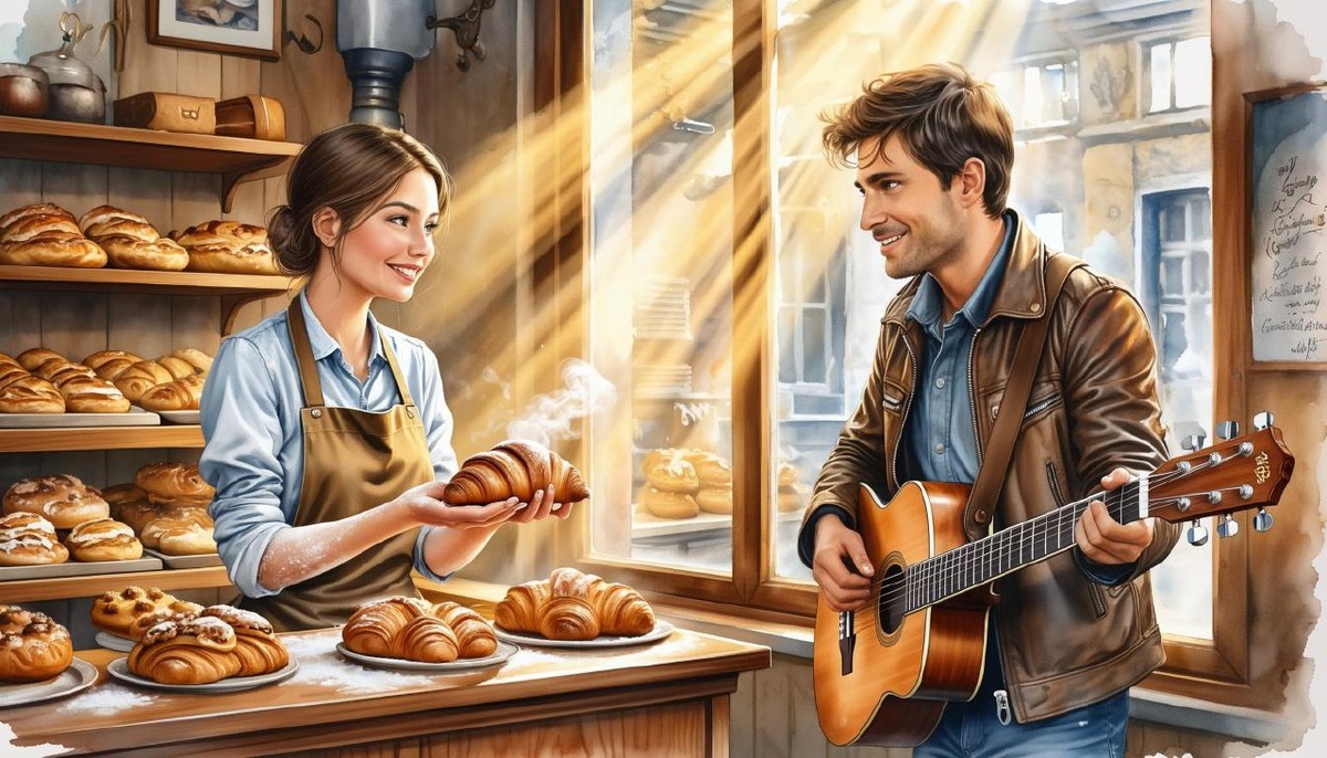 В один из вечеров, когда пекарня уже закрылась, он неожиданно появился с гитарой.