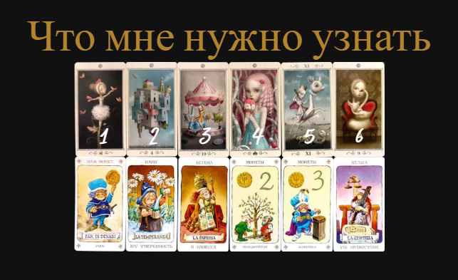 Расклад опишет ваше состояние, подсветит, что нужно узнать про себя, чтобы двигаться дальше, что нужно изменить, чтобы завтра получить то, что хотите.