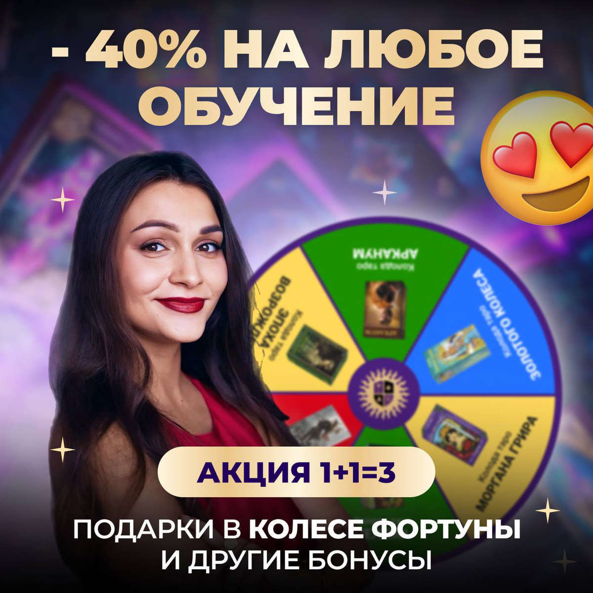 У меня сегодня день рождения🥳 💥 И я хочу вас порадовать, поэтому мы открываем большую распродажу обучений в нашей школе! Только в течение 5 ДНЕЙ вы можете купить любое из 13 обучений со скидкой 40%🔥 Такого в этом году еще не было! Но это еще не всё🎁⬇️ При покупке двух обучений – третье вы получаете в подарок, а также сможете принять участие в беспроигрышной лотерее🔥 Я сама выбирала для вас самые лучшие призы – это невероятно красивые колоды таро! И вишенка на торте🍒⬇️ Бонус для тех, кто приобретет наши обучения в течение 24 часов: + 1 дополнительный месяц доступа в наш крутейший чат с кураторами и одногруппниками🔥 Где вас ждут: интерактивы и помощь в трактовке ваших личных раскладов 🤌🏼 Конечно, вы можете выбрать самостоятельное обучение🤔 Но когда идёшь один – сложно. 🔸 Нет системы, помощи и поддержки. Чувствуешь себя слепым котёнком 🤯 И выглядит это примерно так: Вы тратите много времени на изучение информации в интернете → берёте её урывками → не получаете нужных знаний. К