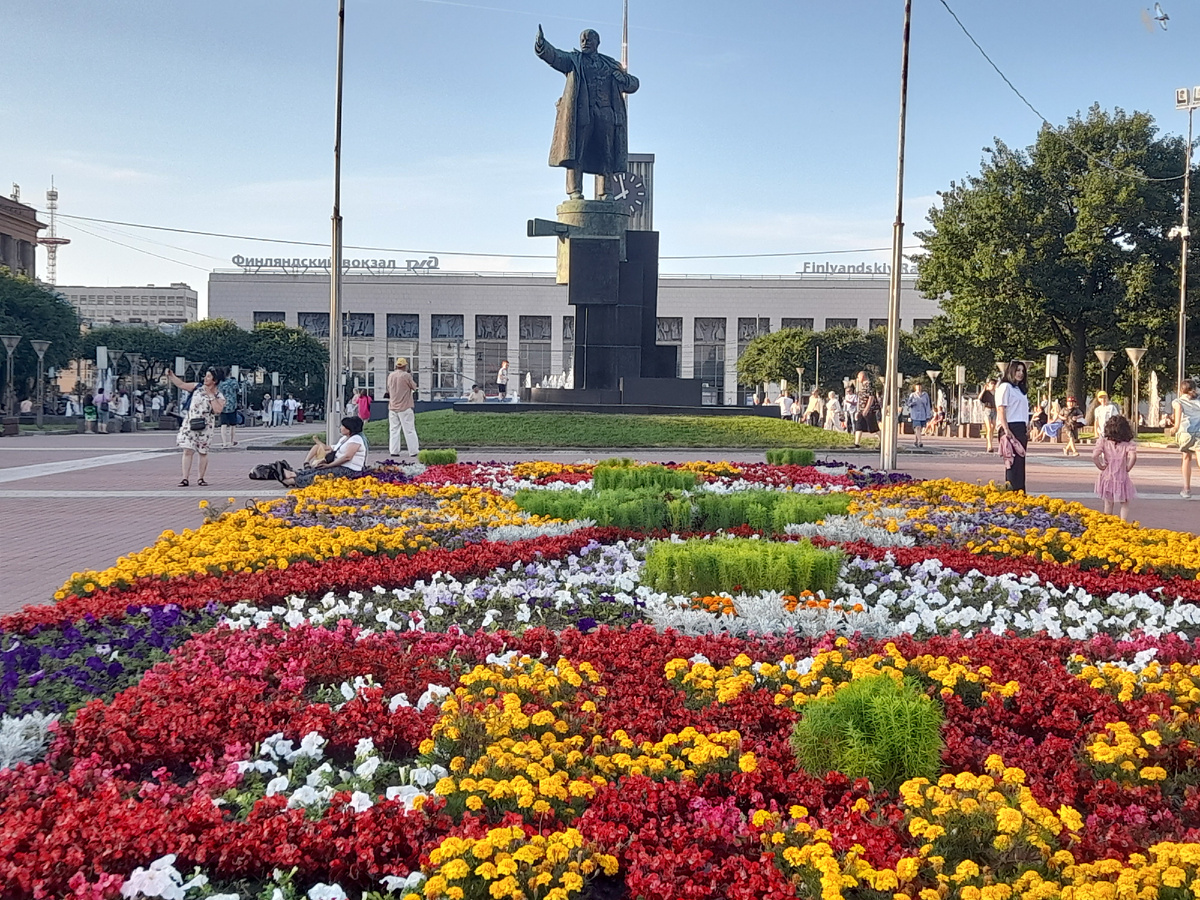 Приветствую всех. В этот вечер все мои подруги были заняты, поэтому поехала одна на Финляндский вокзал. Днём лучше не выходить, душно и жарко. В метро хорошо, а вот в наземном транспорте не везде есть кондиционеры. Доехала на станции метро Площадь Ленина. Вышла на улицу Боткинскую, до фонтанов пришлось ещё идти пешком. Что это я все про фонтаны, да про фонтаны? На площади ещё много чего можно пофотографировать. Шикарное оформление газонов, памятник Владимиру Ильичу и сам вокзал, например. Радуга в фонтане. Не планировала попасть на поющие фонтаны, но мне повезло. Водные струи начали свой вечерний танец под музыку. Конечно же не удержалась и записала видео. Солнечные лучи освещают верхушки водных струй. Памятник, вид сбоку. Ещё газон, только сплошной ковёр из цветов на фотографии. Солнце садится. Белые ночи закончились. На снимке 19 июля 20 часов 23 минуты 2025 г. Остановись мгновение, ты прекрасно! В возрасте уже не хочеться бежать сломя голову, хочется просто посидеть, поразмышл