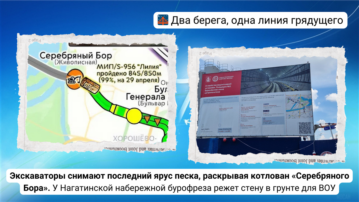 официальные отчеты. Давайте вместе разберемся, что же на самом деле происходит с нашей Москвой. Поехали? Во-первых, представим вам 👀 панорамный обзор стройплощадки 🚇 станции «Серебряный Бор» (проектн. «Живописная») 💸Рублëво-Архангельской линии Раскрытие котлована продвигается от восточной части (со стороны 🚇 «Бульвара Генерала Карбышева») к центральной части. Завершаются работы по устройству с