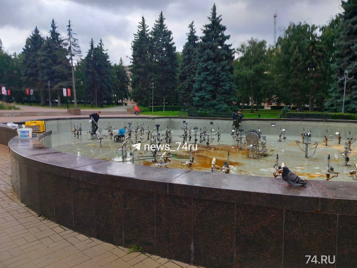 В ответ на пост 💦 Чистка фонтана началась в сквере за площадью Революции Спустили всю коричневую воду оттуда. Затем загнали рабочих со швабрами и моющими средствами. #город@chelyabinsk_smi Поддержать Челябинск: проголосовать 👍 Подписаться | Прислать новость
