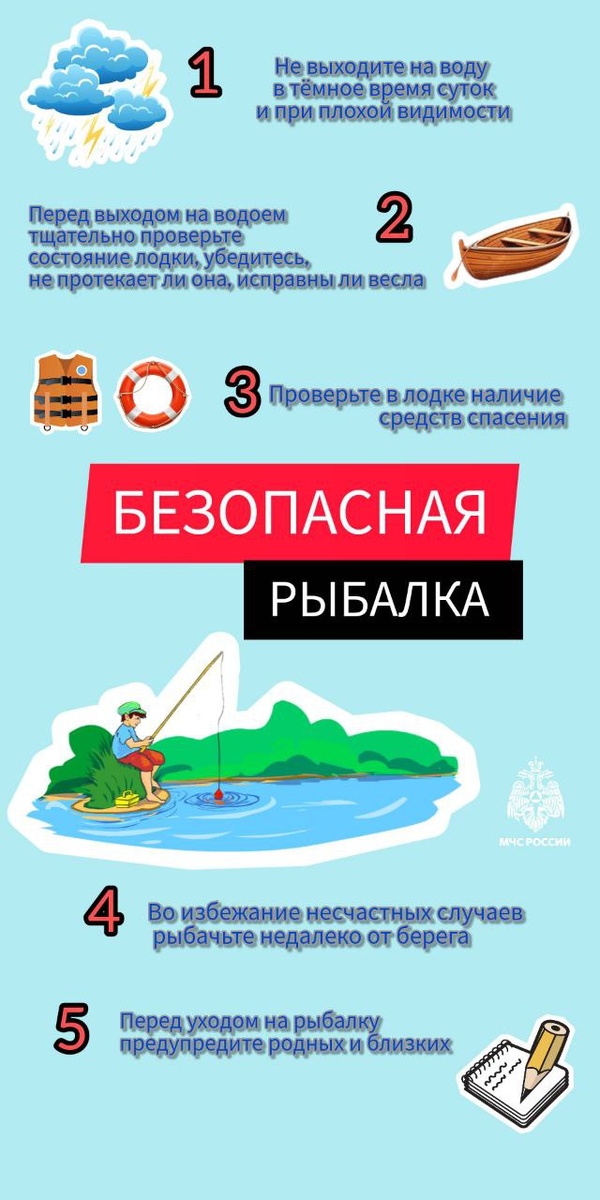Собрался на рыбалку? Смотри в оба 👀 ❗МЧС России предупреждает: вода ошибок не прощает. Чтобы провести время безопасно, следуй рекомендациям: ✔️проверь состояние лодки, наличие средств спасения; ✔️обязательно надень спасательный жилет; ✔️не выходи на воду в тёмное время суток и в условиях плохой видимости; ✔️возьми с собой средства связи; ✔️не отходи далеко от берега; ✔️исключи употребление алкоголя; ✔️сообщи родным место, куда направляешься и время возвращения. 📲В экстренных случаях звони по номеру 112. МЧС Республики Бурятия