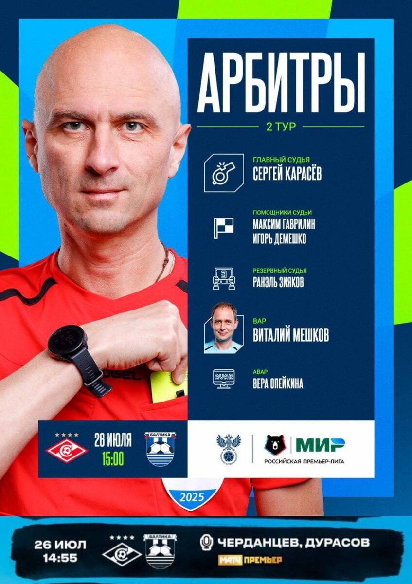 К - Комбо! На первый тур Казарцева назначили сиять чудить и он сиял чудил. На второй тур решили не мелочиться и в нагрузку к Карасеву ещё и Черданцевым решили добить. Ай да Матч, ай да РПЛ, всё делают, чтобы спартачам было комфортно смотреть за игрой любимой команды. Спасибо вам, дорогие вы наши. А можно сразу озвучить даты, когда к этой прекрасной компании присединится легенда Питера товарищ Мешков? Ну чтоб мы как-то морально подготовились.