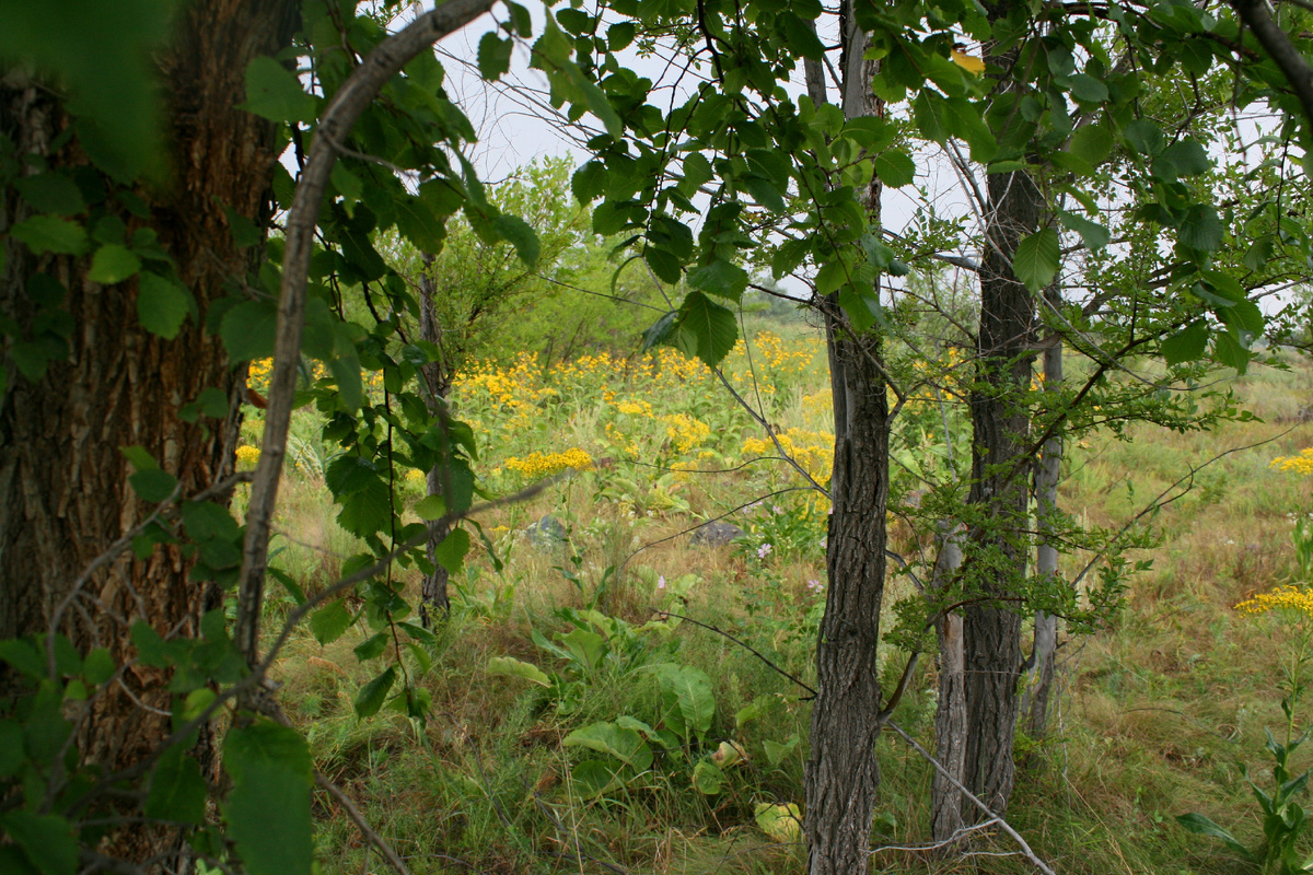 Под ольхой пережидаю дождь. Небо вдруг затянулось тучами, и он, дождь, сочится с высоты. Солнца нет. Но у меня своё солнце: под ольховыми деревьями цветут и светятся в дождевой пасмури крестовник Швецова и девясил высокий. Цветущая поверхность поляны под небесной влагой – как мутное густое жёлтое пятно на солнечной звезде, с протуберанцами (именно так, как под ольхой, протуберанцы видно на космических фотографиях с хорошим разрешением). Вы стояли среди протуберанцев? А я вот попробовал. Ничего, не обжигает. Согревает холодную за мокрой майкой грудь. И рождает радость… У меня ж их много – запасных светил… Сюда бы не успел от дождя – пристроился бы под берёзы, к зарослям огненно-медового хартолеписа: там тоже протуберанец на протуберанце…