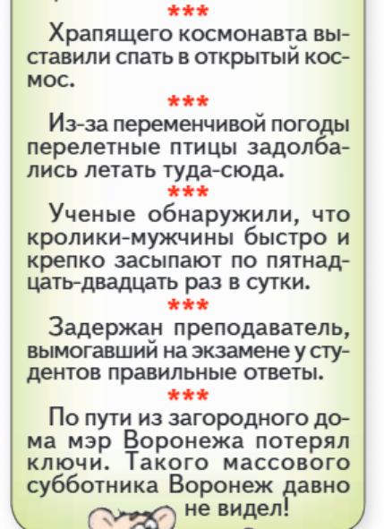 - Ты же знаешь, у меня договор с журналом "Крокодильчик", перед публикацией нигде свои произведения освещать не имею права, иначе не заплатят. Давай лучше свои старые анекдоты расскажу. Наливай! ... Хрррррр!!