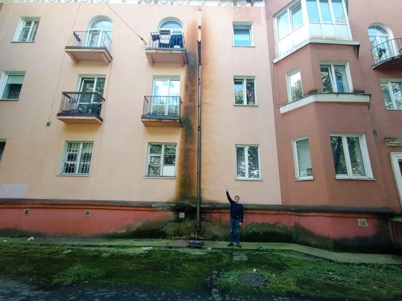 В Калининграде свежий капитальный ремонт домов на улице Киевской оказался под угрозой из-за халатности управляющей компании. Как выяснилось, УК не обеспечила своевременную очистку водосточных желобов, что привело к их обрыву. Теперь во время дождей стены домов заливает водой, появляется плесень, а недавно отремонтированные фасады быстро приходят в негодность.