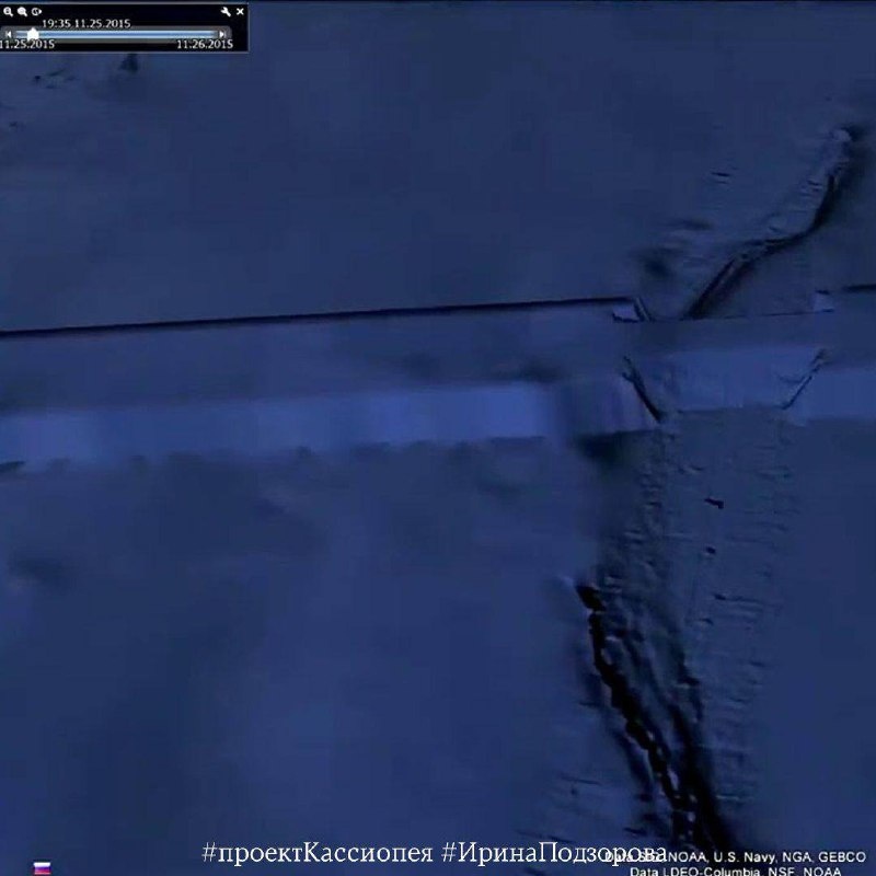 Никакая стена там не проходит. То, что снимали – дефект программы, которая дает изображение. Потому что на одних фотографиях она появляется в одном месте, а если хорошо посмотреть координаты, то на других программах, если еще наложить координатную сетку, будет совершенно в другом месте. А в том месте будет чисто. Она как бы перемещается.