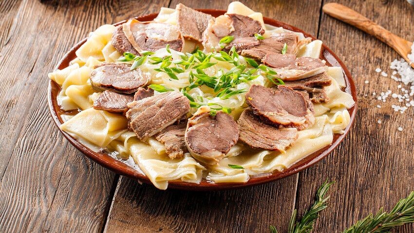 Бешбармак — это одно из самых популярных и традиционных блюд у казахов, башкир, киргизов и других народов региона. В переводе с тюркских языков название можно перевести как «пять пальцев», ведь раньше бешбармак ели руками, разделяя пищу и показывая единство семьи и друзей.