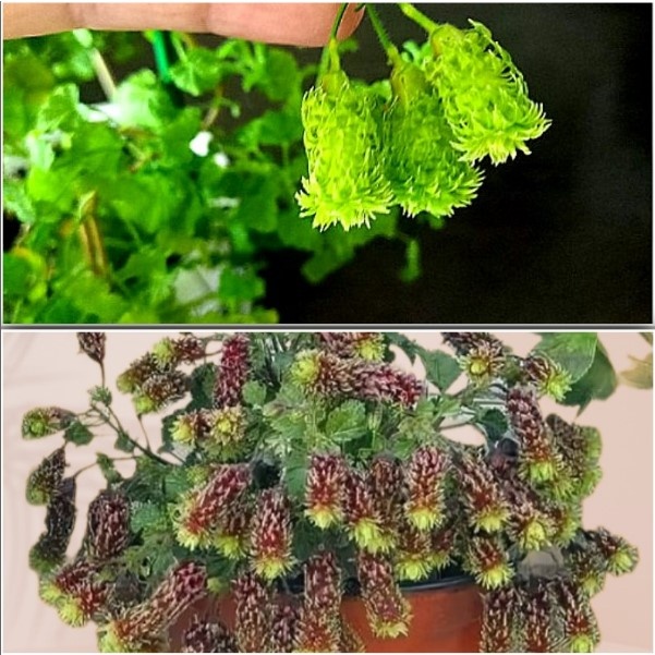 Такого шедевра в спорте пеларгонии я ещё не видела! Эта мутация, действительно, уникальная, я бы даже сказала экзотическая. Много ли пеларгоний, цветущих … шишечками, вы видели, друзья? Думаю, что она единственная неповторимая. В таком виде этот спорт, эта мутация был закреплён как новый сорт с 2020 года. Когда-то на выставке мне удалось приобрести шикарный ангел Quantock Double Dymond, единственный, цветущий многочисленными махровыми цветами. Вместе с ним предлагался и спорт этого сорта, который вместо цветков выдаёт оригинальные зелёные шишечки. В процессе созревания они становятся светло-бордовыми с зеленью на кончиках каждой шишечки. Назвали этот спорт совсем другим именем - Fir Tree Catkins, что означает «Еловые серёжки». Может оно так и есть, когда ель цветёт, но мне они напоминают цветки некоторых сортов кактусов. И серёжки ему идут, как бы сорт этот не назывался, именно они делают спорт уникальным. Конечно, это уже не ангел, а мини зоналочка с личиком ангелочка. По типу роста