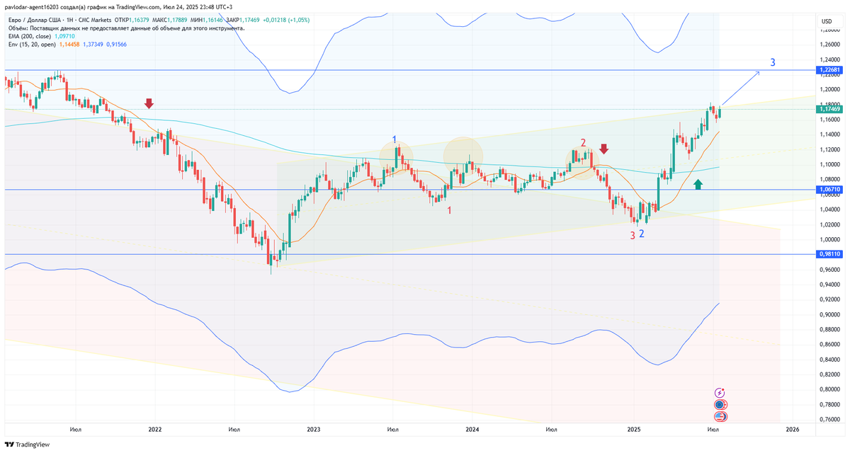 Ещё больше новостей: EURUSD 💸 подала сигнал на лонг ⬆️ до конца августа 2025! На недельном таймфрейме (ТФ) видим аптренд 🛤️ до конца осени 2025. Если в августе случится пробой апканала вверх 💥, мой прогноз подтвердится! 💯 Евро 🇪🇺 готовится взлететь 🚀, пролива от верхней границы не наблюдается 👀. Ситуация явно лонговая! 🐂 Анализируя дневной график 🗓️, пара движется в малом апканале 🛤️ и уже в июле 2025 подала сигнал в лонг ⬆️. Готовимся к ещё одной волне роста! 🌊📈 Как находить моменты времени, когда делать инвестиции или покупать акции? Когда брать лонг или шорт фьючерсов? Стратегия входа в сделку? Как торговать по тренду? Как узнать разворот тренда в активе? Как использовать технический анализ в торговле? Какие индикаторы и паттерны работают? Как читать и анализировать график котировок? Читайте в моем телеграмм канале: Мой телеграм канал: https://t.me/investory_MOEX Мой рутуб канал: https://rutube.ru/channel/64589600/ Моя группа в Вконтакте: https://vk.com/club231711396