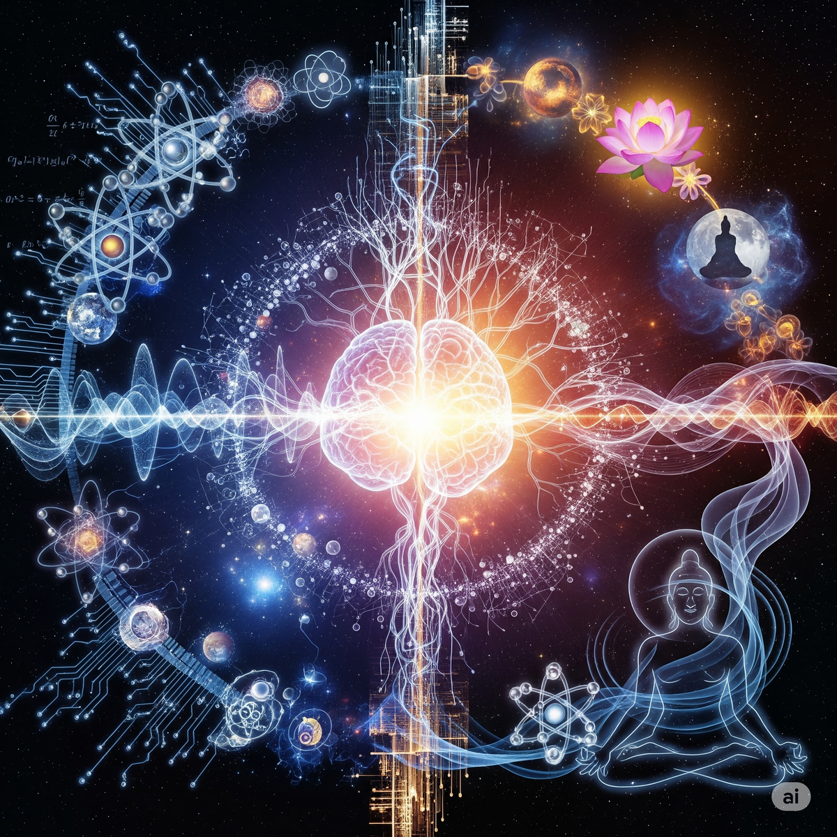 - Синергия: Оба подхода единодушно сходятся в том, что ум – это мощный проектор, который непрерывно создаёт «фильм» реальности, и человек зачастую принимает этот фильм за абсолютную истину. Наука объясняет этот процесс через сложные нейронные процессы и квантовые эффекты, а религия – через метафоры сна, завесы или иллюзии. Путь к подлинному освобождению и глубокому пониманию лежит в выходе за пределы ограничений ума, будь то через научное исследование его механизмов или через глубокие духовные практики.