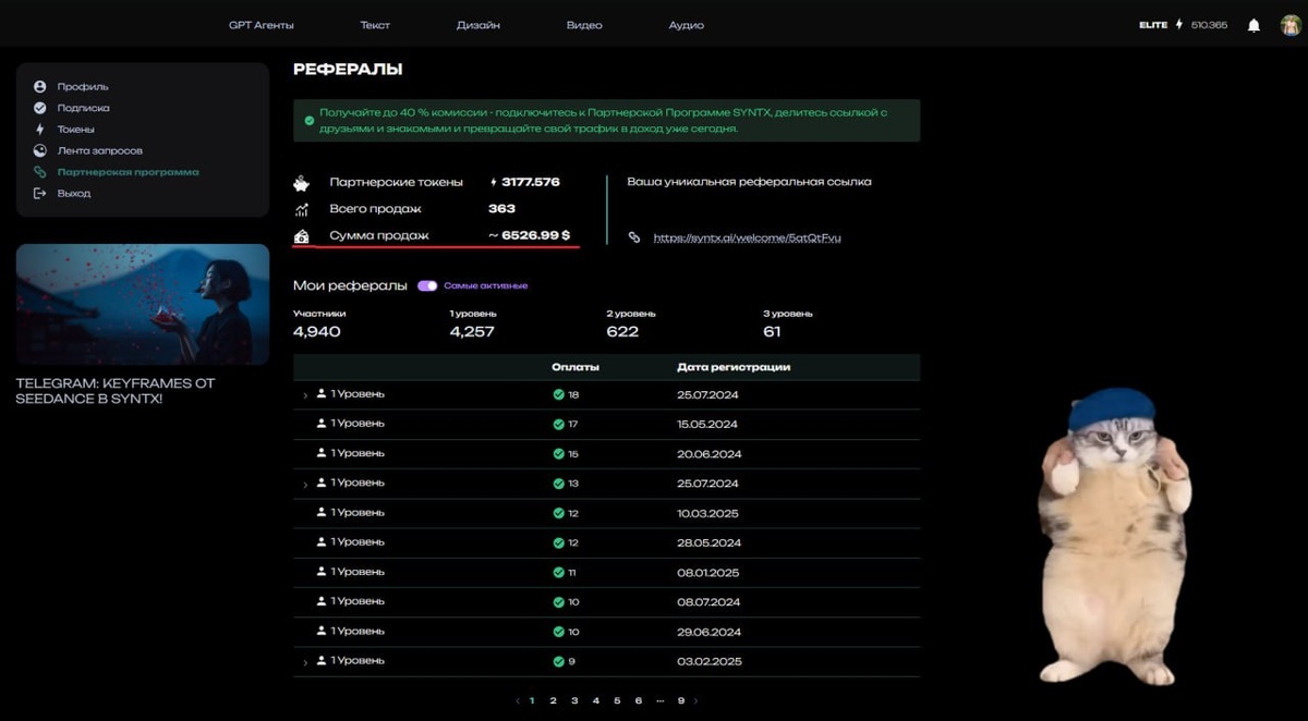 Не забывайте про партнёрку SYNTX. Мои рефералы самые лучшие, люблю вас 🫶 Уже год бесплатно пользуюсь всеми нейронками 😄
