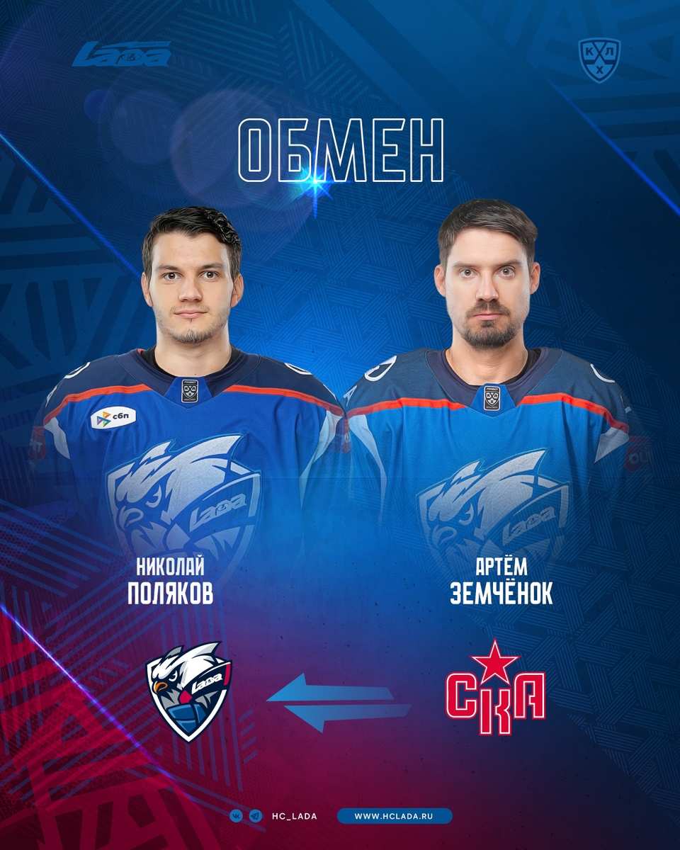 Тольяттинская «Лада» совершила обмен с АКМ, в результате которого получила права на защитника Александра Кондратенко в обмен на денежную компенсацию. Затем «автозаводцы» обменяли Кондратенко в петербургский СКА на защитника Артема Земченка, права на нападающего Николая Полякова и денежную компенсацию.
