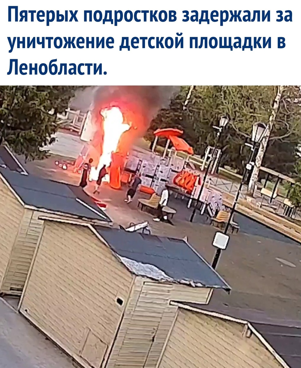 В поселке Рахья в Ленинградской области подростки устроили поджог на детской площадке. Общий ущерб составил примерно 1,7 миллиона рублей. Возраст участников составляет от 13 до 15 лет. Трем из них, старше 14 лет, наложены ограничения на выезд за пределы региона. Двух младших подростков опросили и передали их законным представителям. По факту происшествия возбуждено уголовное дело по статье умышленного уничтожения чужого имущества через поджог. Другие новости