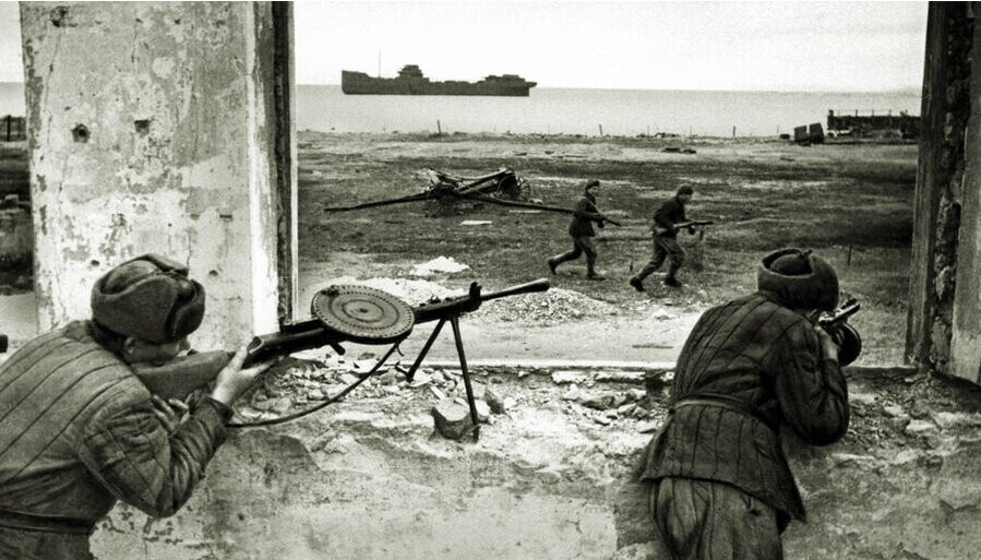 Здравствуйте Уважаемые читатели! В декабре 1941 года наши десантники высадились прямо в порту Феодосии, освободили город и, ударив к Азовскому морю, вынудили врага покинуть Керченский полуостров. Другие десанты тогда успеха не имели. В январе 1944 Красная армия вновь зацепилась за Восточный Крым, но расширить плацдармы не получалось, тем более 11 января провалилась высадка у мыса Тархан. И вот командующий фронтом Иван Ефимович Петров решает высадиться в порту Керчи, освободить её и соединиться с плацдармом. Поэтому ночью 23 января 1944 года к Керчи выдвигается советский десант. При этом были обстрелы артиллерией с нашей стороны в других местах и имитация десантов, чтобы запутать врага. Итак, выдвинувшись из бухты Опасная к Керчи, группа 393-го батальона морской пехоты под командованием майора Старшинова, имея на вооружении 44 станковых пулемёта, 17 ПТР и 6 миномётов, высадилась в Керчи у Широкого мола и начала продвижение. В 4 часа утра высаживается 369 бмп майора Сударинова числ