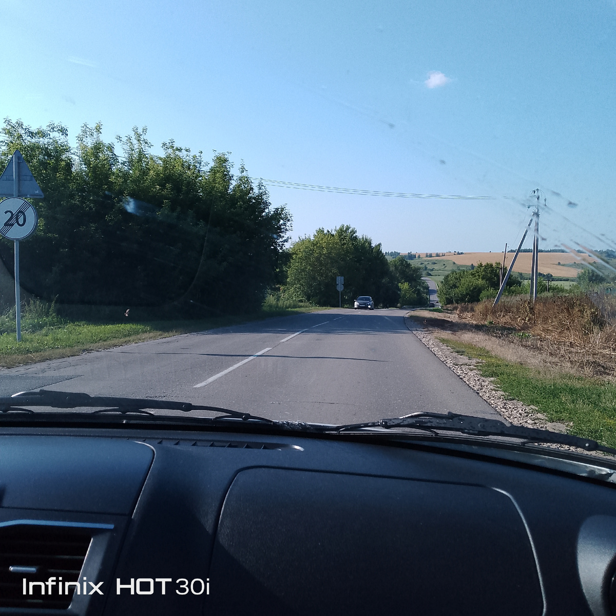 Здравствуйте, мои дорогие читатели! Всех благ! Иваныч приехал с работы и снова за руль. Поехали в Озон за заказами. Решили на семейном совете купить мне джинсы и футболку. ( Старые джинсы- то совсем прохудились! 🤣Столько не живут, сколько я их ношу! 😂) Заказала три пары джинс и футболки с постоплатой. Подошли одни джинсы. Оплатили их и футболку, вторая ещё не пришла! Буду теперь рассекать в новых джинсах. 💃 Даже не думала, что вечером такая жара! И снова я к вам со своими фото нашего края! Господи, выезжаем из дома и такая красота и простор, что дух захватывает! Леса, перелески, поля, бескрайнее синее небо! Боже ,какое счастье жить в таком краю! Ехать нам до райцентра недолго, минут 10. Почти приехали! Нарядилась в свой вязаный костюм белый, но мне жарко стало от всех примерок и я потом не стала снимать футболку, поехала обратно в ней! 🤩 Ну уж, раз мы выбрались в люди, зашли в Пятерочку, кошке😻😹😻надо купить еды. Потом заехали в фермерский магазин за мясом на ш