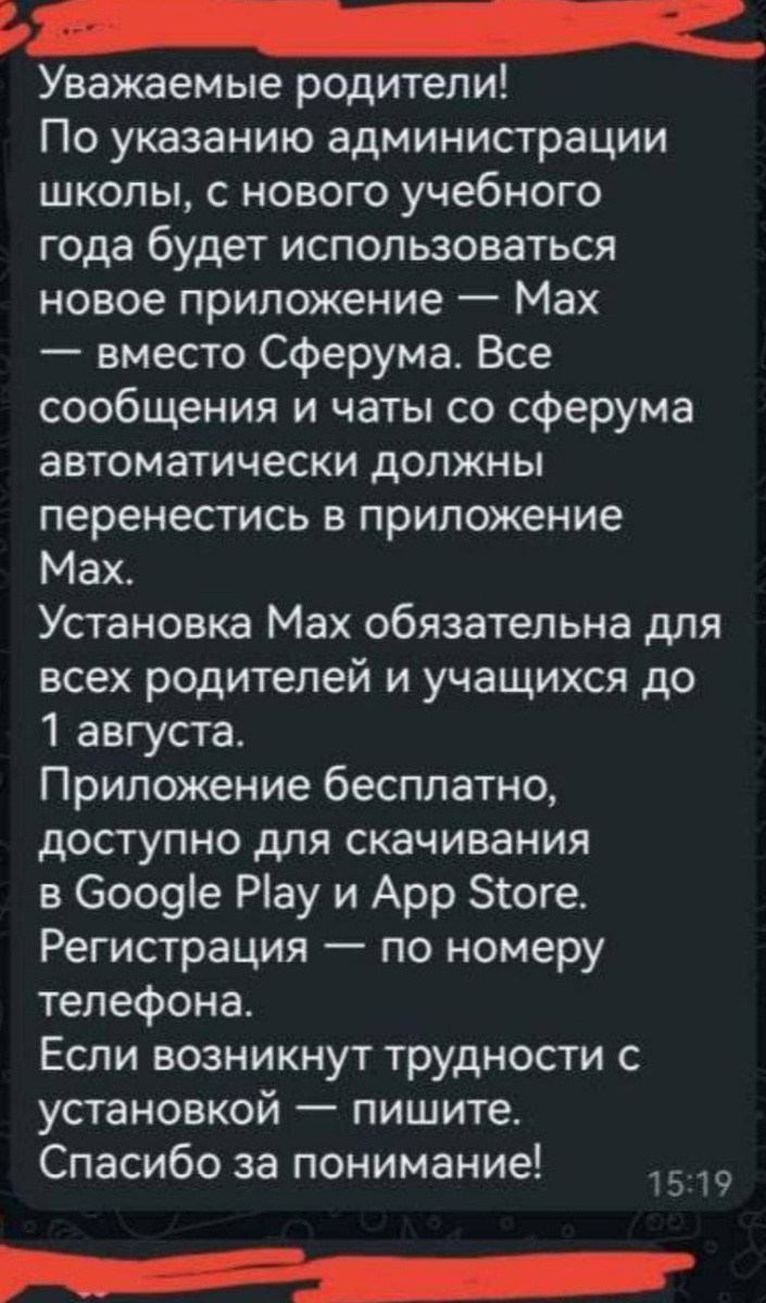Даже если каждый день пинать собаку, то в какой-то момент она на удар не обратит внимания, либо цапнет за ляжку. Так и здесь. Непонятные начальники решили, что родители и их дети начнут в массовом порядке переходить на 1000500 мессенджер. Не, оно конечно прикольно думать, что если раз-другой напрягли, ну там идти на выборы, участвовать по списку в разных мероприятиях, заходить в Сферум, то и с Max проблем особо не возникнет. Да только чует моё сердце, уже простые учителя начнут задавать вопросы. "Вы нам зарплату за что платите, за то чтобы мы обучали детей, или чтобы мы выполняли функцию рекламных менеджеров"?))