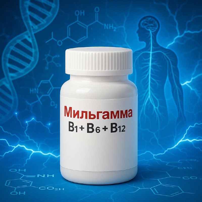 🧬 Мильгамма — нейровитамины в ампулах и таблетках Мильгамма — это комбинированный препарат, содержащий витамины группы B в высоких дозировках: B1 (тиамин), B6 (пиридоксин) и B12 (цианокобаламин). В форме инъекций дополнительно используется лидокаин для снижения болевых ощущений. ℹ️ Выпускается в Германии, изначально разработан как средство для поддержки нервной системы при болевом синдроме, невритах, полинейропатии. Откуда появилась? Концепция "нейровитаминов" начала развиваться в Европе ещё в середине XX века. Немецкая фармацевтика первой предложила использовать витамины группы B не как БАД, а как активное средство при дегенеративных и воспалительных заболеваниях нервов. Биохимия действия 💊 B1 участвует в метаболизме глюкозы и выработке АТФ в нейронах. Без него — энергетический дефицит. 💊 B6 нужен для синтеза нейромедиаторов (дофамин, серотонин, ГАМК), влияет на настроение и боль. 💊 B12 — ключевой элемент в метилировании, восстановлении миелиновой оболочки нервов и кроветв