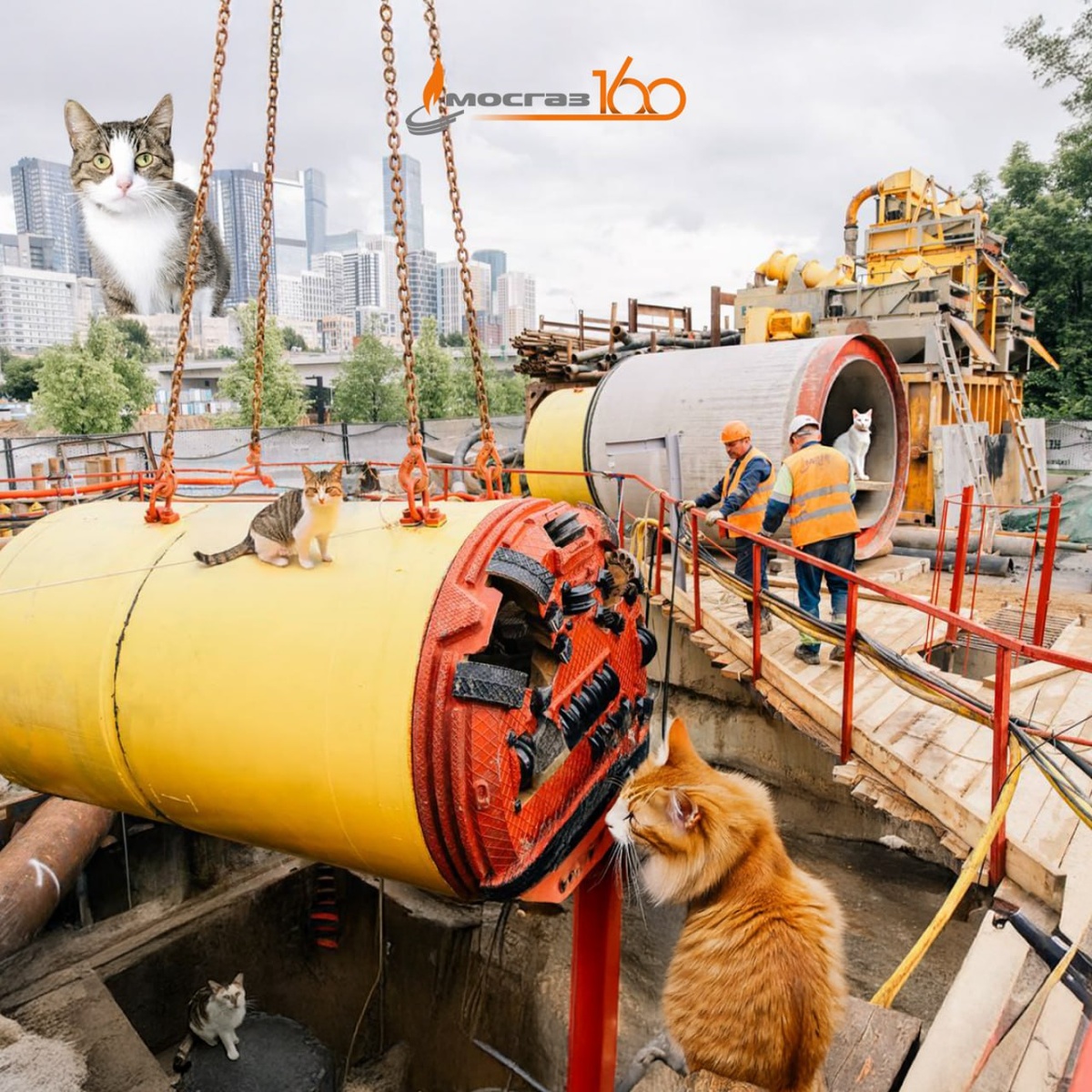 ❗️Внимание, внимание! Шелепихинский дюкер захватили очаровательные пушистики. Предлагаем вам посчитать, сколько хвостатых решили понаблюдать за процессом строительства. Выбирайте правильный ответ с помощью реакции: ❤️ — 3 😍 — 5 👍 — 7 @aomosgaz