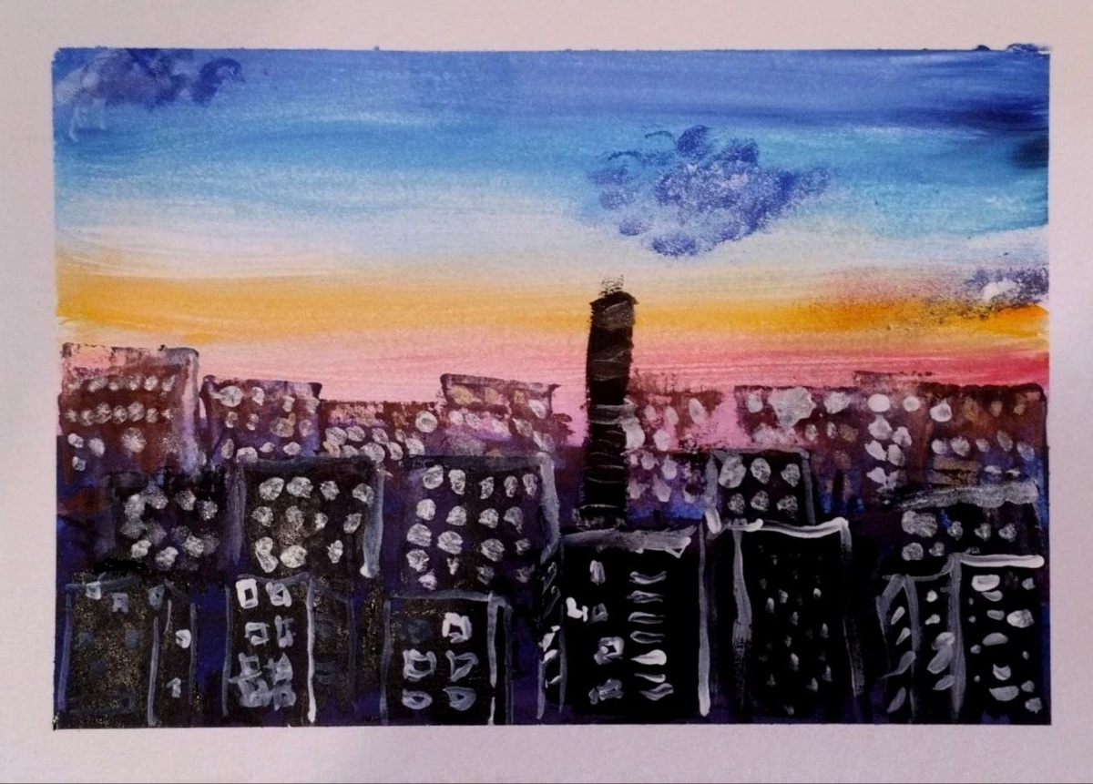 Закат в Анапе, вид с балкона. Наталья, 11 лет. Гуашь.