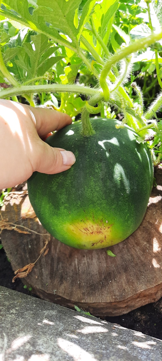 У нас сейчас стоит очень комфортная погода. Не было никаких проливных затяжных дождей, как в других регионах. Правда, дожди все́ же шли сильные, но они очень быстро заканчивались и сразу выглядывало солнышко. Растениям благодать! Вот например. Буквально неделю назад я рассматривала арбузные плети и, найдя там пару малюсеньких арбузиков размером с вишню 😁, расстроилась: как обычно, ничего не выросло 😒. А сегодня... Смотрю... А там: Ну всё, теперь на следующий год отведем под них площадь побольше 👍 Огурцов очень много. Плети сильные, здоровые, тьфу-тьфу-тьфу 😁 И помидор много. Особенно радуют в этом году в открытом грунте. Вот казалось бы, июнь был такой негодный: холодина, дожди не прекращались, ночная температура опускалась до + 5!!! А они все увешаны плодами! Перца тоже много, кабачков, яблок видимо-невидимо! Груши, виноград.. А мы боимся, переживаем, расстраиваемя, плачем: холодно, дождливо, всё померзнет, утонет.. Очень урожайный год 👍👍👍👍👍
