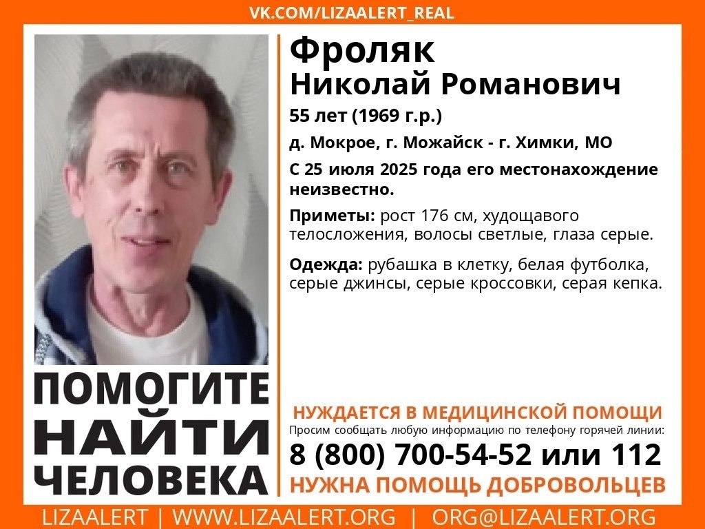 СРОЧНЫЙ ПОИСК ❗️❗️❗️ По поиску Николая Романовича срочно нужны автономы: - д. Мокрое, Можайский, м.о. - г. Можайск, автостанция Николай Романович нуждается в мед помощи, дома ждет его мама. Координатор-консультант: kotovskii За задачами приходите к инфоргу поиска: Валентине Якутянке https://vk.com/Yakutyanka_la (https://vk.com/id15870810)