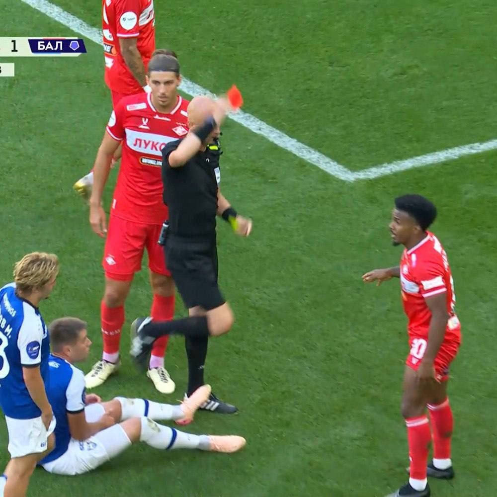 Заболотный подвел "Спартак" в домашнем матче с "Балтикой". Антон удалился на 10-ой минуте за удар ногой Бевеева😨 Во втором тайме вторую желтую получил Маркиньос. Красно-белые доигрывали матч вдевятером и были разгромлены 0:3. "Балтика" - 4 очка - временно поднялась на первое место в РПЛ🔥🔥🔥