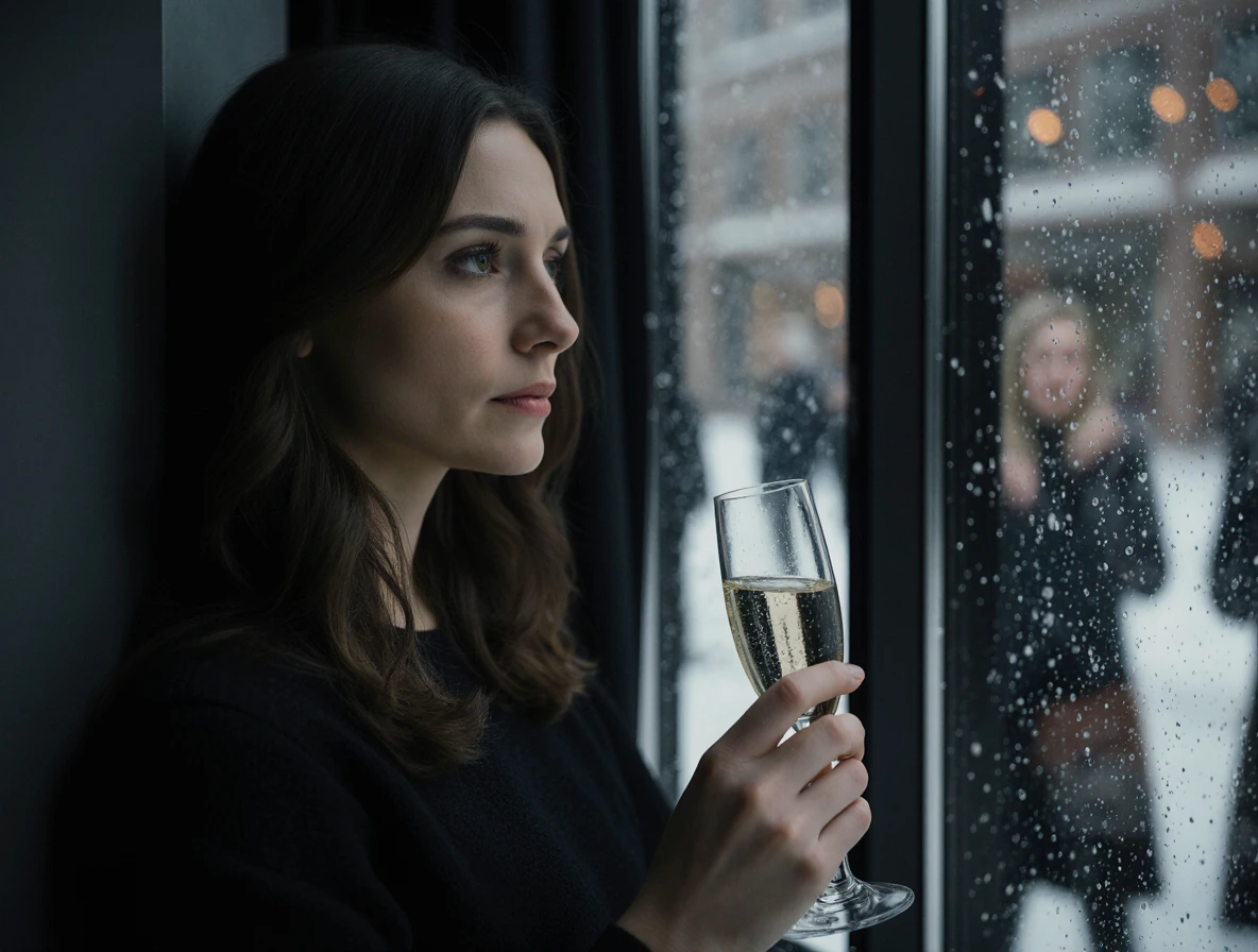 На предновогодний корпоратив она шла как на казнь. Но решила, что прятаться в четырёх стенах — ещё хуже. Шумный зал, блеск мишуры, громкая музыка. Аня чувствовала себя чужой на этом празднике жизни. Взяв бокал шампанского, она отошла к окну, глядя на танцующие снежинки.