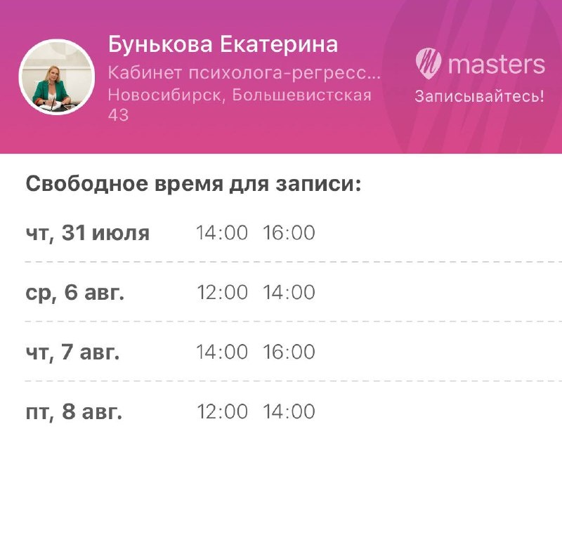 Дорогие мои кто планирует, но еще думает рекомендую забронировать окошко в удобное время: https://mst.link/katrin_goldfish А то окошек не много уже на ближайшие 2 недели