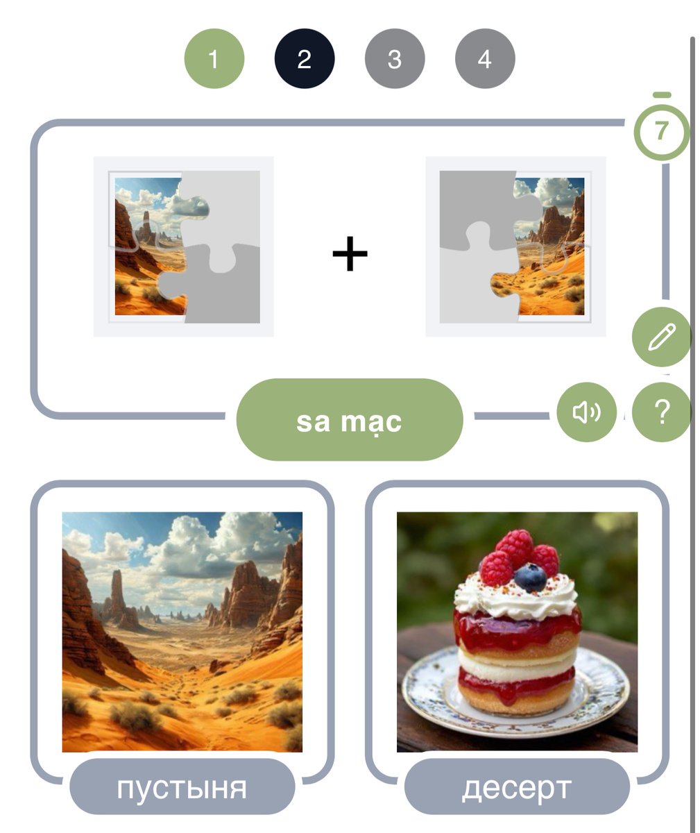 Недавно в очередной раз обнаружил, что забыл, как в точности различаются в произношении слова «desert» («пустыня») и «dessert» («десерт»). Вот они в своем типичном изображении, только на вьетнамском языке, чтобы было чуть-чуть неожиданно для вас, и чтобы мы увидели, что не только в русском, но и во многих других языках, они, вообще-то, и пишутся, и читаются по-разному: «món tráng miệng» - «десерт», а «sa mạc» - «пустыня». Наверное, можно было бы махнуть на это рукой, бог с ней, с «пустыней», где мне это слово понадобится? Но как представлю себе, что я когда-нибудь в ресторане, в окружении близких, которые знают, что я много лет учу английский, а недавно еще и начал делать онлайн проект для этих же целей, вдруг спрошу у официанта по-английски что-нибудь вроде: «А какая у вас самая вкусная пустыня?!». Так сразу понимаю, что смиряться мне с этой проблемой нельзя! Картинка выше - это урок со словами «пустыня» и «десерт» из турецкого языка (турецкого - по тем же, вышеназванны