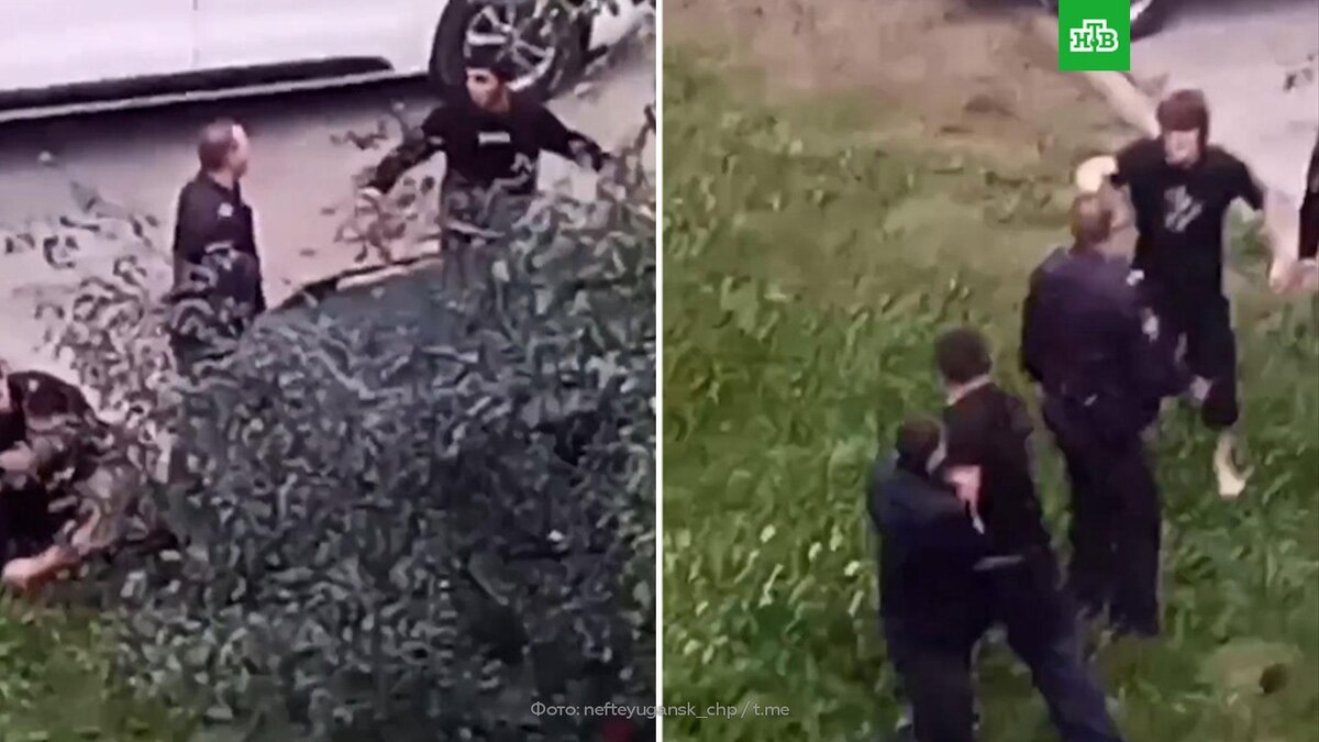 В городе Нефтеюганске два пьяных молодых человека подрались с сотрудниками полиции. Очевидцы сняли потасовку на видео.