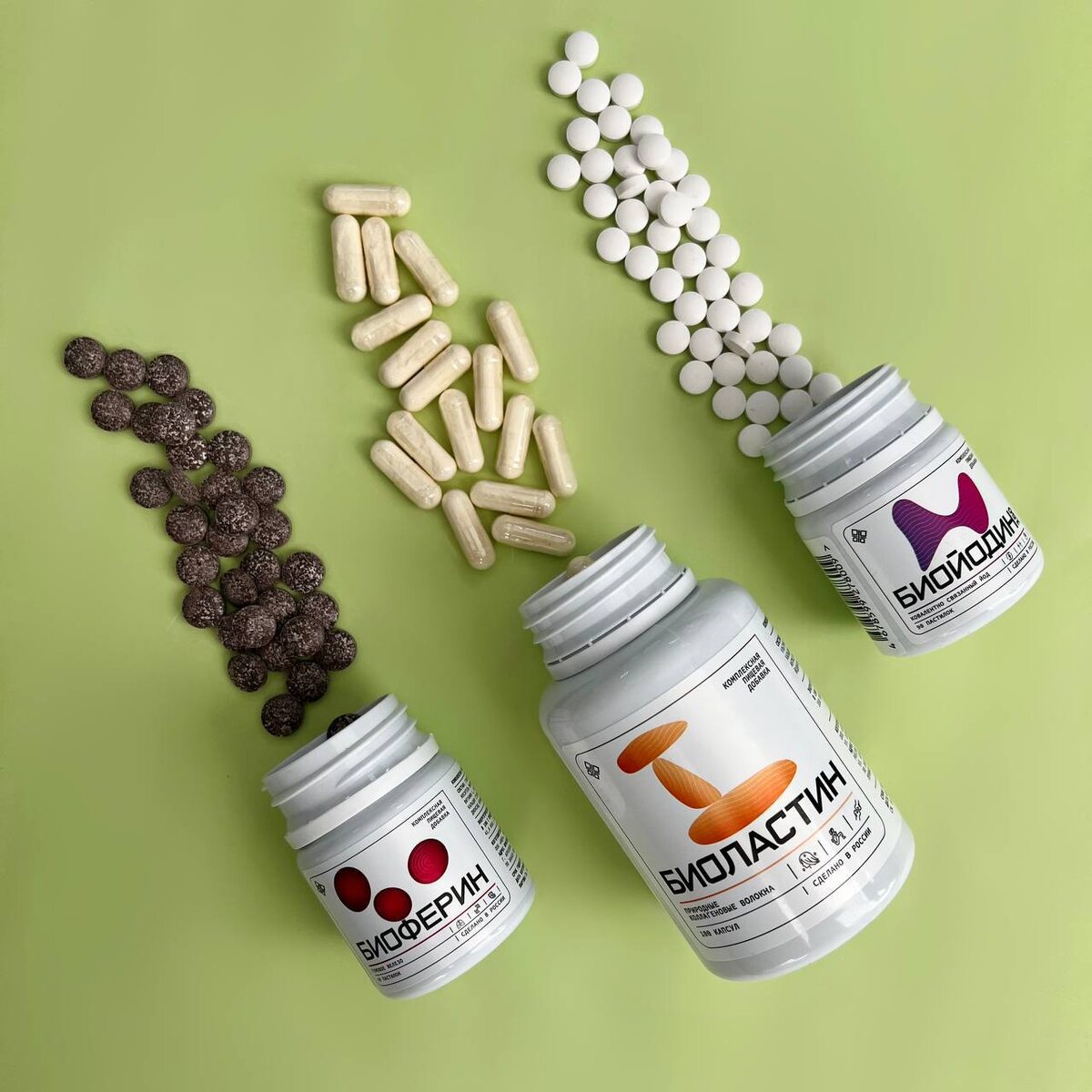 - Четкая направленность: Каждый продукт решает свою задачу: Биоферин – дефицит железа и анемия, Биойодин – дефицит йода и поддержка щитовидной железы/метаболизма, Биоластин – поддержка и восстановление соединительной ткани.