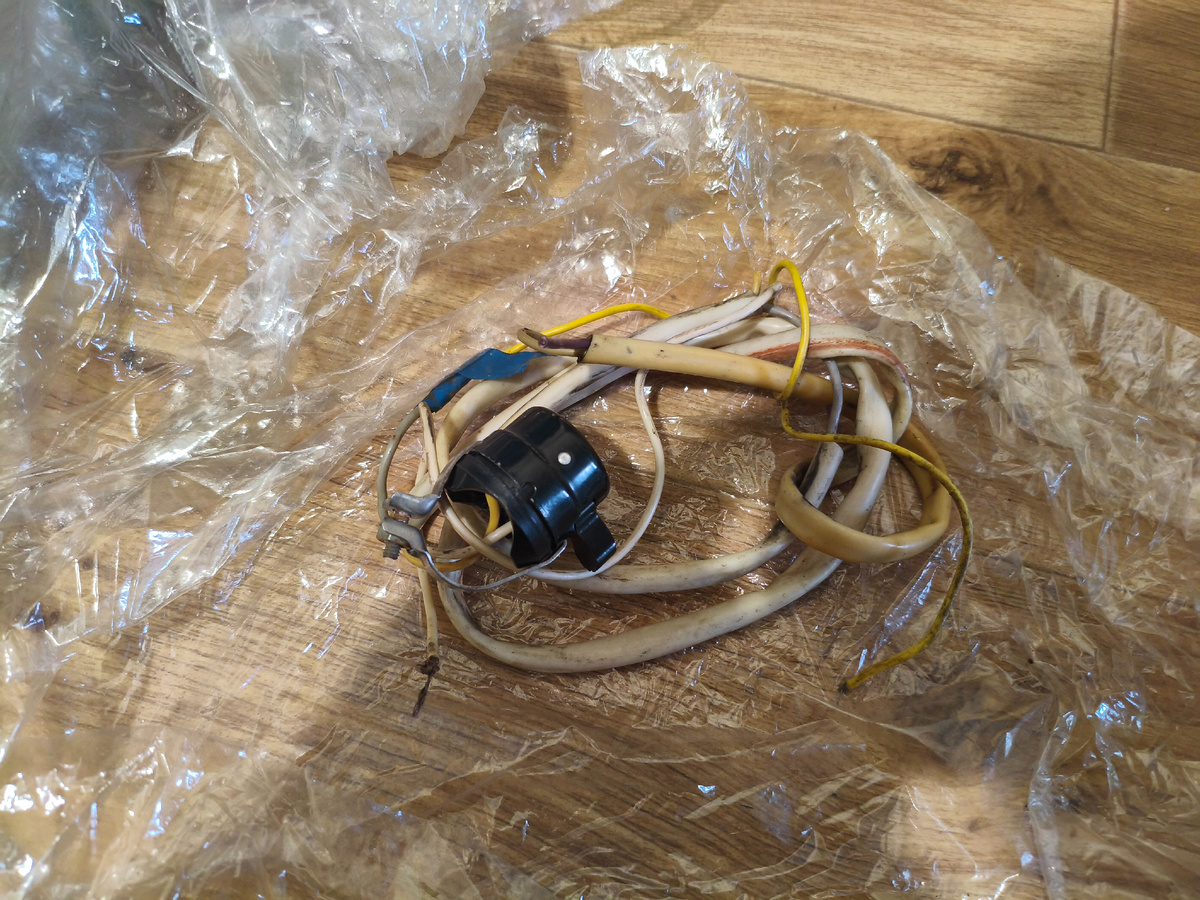 Доброго времени суток. Сегодня у нас коротенький постик про укладку проводки на легкий мопедах. Вы в мастерской болотного медведя и сегодня мы поговорим о красивом. Я уже упомянул ранее, что приобрел новую штатную проводку на ригу 13. Точнее кнопку и проводку бонусом. А проводка с кембриком. Который в свою очередь успел принять форму. Согласно схеме подключения к кнопке у меня как раз версия косы от д8Э. Они отличаются тем, как реализована цепь света. На 12В мопеде в фаре нет трансформатора. На костыль на ручке сцепления не обращайте внимания. Я работаю над ним. Но вернемся к проводке. Именно в этот момент я осознал, что кембрик в точности повторяет то, как он лежал по раме на изначальном мопеде. И пришло понимание, что покупка намного ценнее, она позволит практически провести реставрацию того, как все было. Традиционный пучок проводов под фарой. Не смотря на то, что провода местами покусаны, к ним реально нарастить необходимую длину. При этом сами провода толстые и эластичные. Что дл