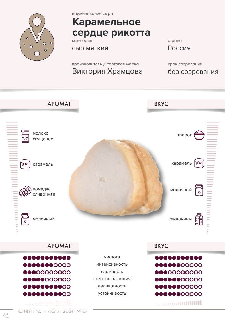 Надоела "корова"? Попробуйте сыры из козьего молока! Да, знаю, они нравятся не каждому. Тем не менее, чтобы составить собственное представление о своих предпочтениях, нужно пробовать. Кроме того, козьи сыры могут стать отличным украшением сырной тарелки. Ароматика и вкус – с ярким карамельным тоном, во вкусе – ощущение нежного сырника. Несмотря на то, что сыр произведен из козьего молока, козья нота не ощущается. Хороший вариант десерта для самостоятельного употребления. Сыр оставляет очень хорошее впечатление – аккуратный внешний вид и привлекательный цвет, аккуратная «коза» в ароматике и вкусе сыра. Варианты употребления – в составе сырной тарелки, самостоятельно. Отличное переложение технологии манчего на козье молоко. Интересный образец сыра с ярко выраженной ароматикой и отличным балансом. Сыр украсит сырную тарелку и прекрасно дополнит холодные блюда. Подписывайтесь на канал в Дзен "Сырный Гид", здесь полезная информация о сыре и сырной отрасли.