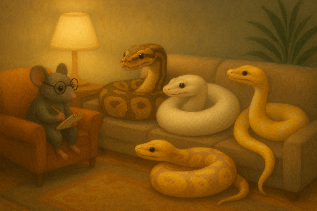🐍 Не всё зависит от цвета — но иногда цвет идёт в комплекте с настроением. Рассказываю, какие морфы чаще бывают трусливыми, кто с характером, а кто ведёт себя как буддийский монах. Вопреки мифу, королевские питоны — не «универсально спокойные». Поведение может отличаться даже в пределах одного кладки, не говоря уже о морфах.