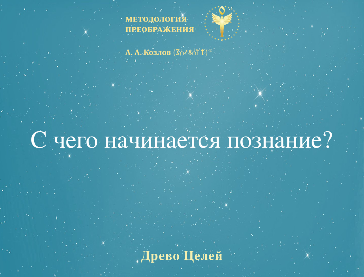 С чего начинается познание? Какой высший уровень познания? Как организовать свое бытие? На вопросы отвечает Александр Анатольевич Козлов – автор Методологии Преображения. «Познание начинается с приобретения знаний, способствующих оздоровлению и омоложению физического тела, с осознания законов социума, понимания сути гармоничных взаимодействий. Высший уровень познания – глубинное постижение действия Божественных законов и принципов в мироздании. Человек открывает для себя высшие законы и в соответствии с ними организует свое бытие, становится носителем этих законов, способствующих выходу его на уровень, который описан в Библии как «смертию смерть поправ»[15]. То есть, смертный человек, созданный из «праха земного», раскрывая Божественные принципы, поднимается над вибрациями трехмерного материального мира и проводит работу на высших уровнях Бытия, там, где смерти нет, тем самым являя свою бессмертную духовную структуру и её миссию. Сегодня для ее осуществления открыты многие источники ж