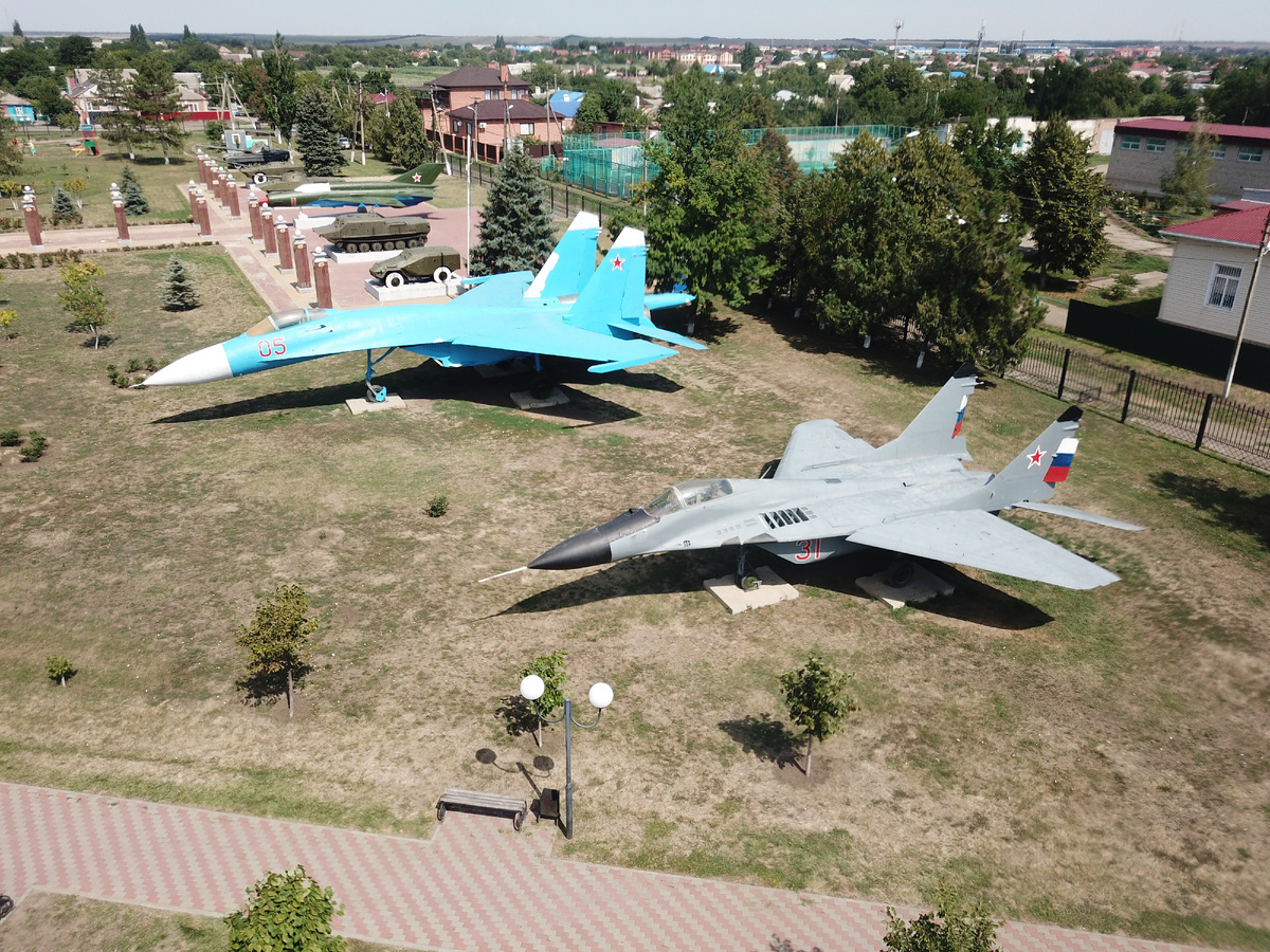 Авиационные музеи бывают разные. Некоторые из них расположены на специальных территориях, а другие можно встретить в маленьких парках. Вот к примеру Парк Победы в кубанской станице Кущёвская, на территории которого собран небольшой музей военной техники, среди которой есть и три истребителя - МиГ-21СМТ, Су-27СК и МиГ-29.